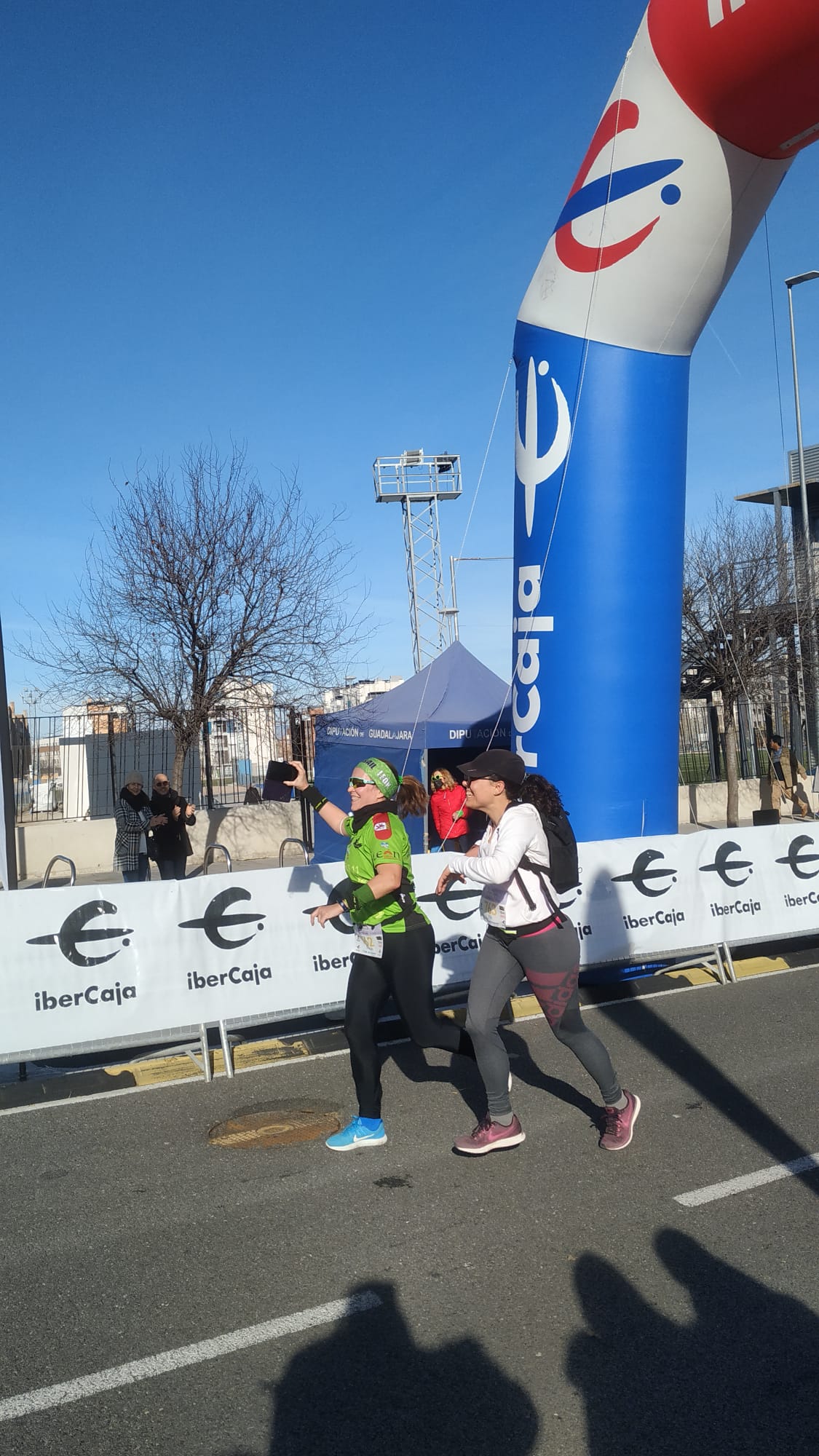 La entrada en meta fue una de las mejores de la corta historia de mis correrías y mi amiga que durante sus “no puedo mas con estas cuestas” no quería ni hablar de otra carrera, ¡se anima para el próximo año!